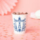 Estos vasos monográficos de pagoda de moda son perfectos para entretenerse y hacer un regalo excelente para la anfitriona. El diseño de la pagoda y el monograma están en azul marino sobre blanco.