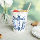 Estos vasos monográficos de pagoda de moda son perfectos para entretenerse y hacer un regalo excelente para la anfitriona. El diseño de la pagoda y el monograma están en azul marino sobre blanco.