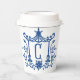 Estos vasos monográficos de pagoda de moda son perfectos para entretenerse y hacer un regalo excelente para la anfitriona. El diseño de la pagoda y el monograma están en azul marino sobre blanco.