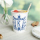 Estos vasos monográficos de pagoda de moda son perfectos para entretenerse y hacer un regalo excelente para la anfitriona. El diseño de la pagoda y el monograma están en azul marino sobre blanco.