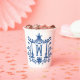 Estos vasos monográficos de pagoda de moda son perfectos para entretenerse y hacer un regalo excelente para la anfitriona. El diseño de la pagoda y el monograma están en azul marino sobre blanco.