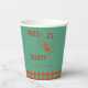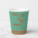 Glamour vintage taza de papel de 30 años en verde tablero de ajedrez y naranja. Cuenta con un chica de cócteles dibujado a mano y una caligrafía de escritura caprichosa.