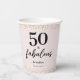 Añade un toque de sofisticación a tu celebración de 50 años personalizada con tu nombre y fecha. Con un diseño de moda "50 and Fabulous" con falsos acentos dorados en un fondo rosado, estas tazas de papel son la combinación perfecta de elegancia y diversión para su evento de hitos.