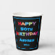 Modern 50th Birthday Custom Name Cool Paper Cups. Colorful cute ANY AGE Adult Birthday Paper Cups with multicolored Happy 50th Birthday Andrew 20xx printed on black background with Turquoise Blue border. Click personalize this template to customize paper cups with your name, and any age dates quickly and easily. Part of The Andrew 50th Birthday Collection in my store under Birthdays. Ships Worldwide fast. 30 Day Money Back Guarantee.