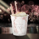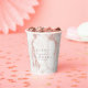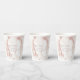 An abstract background reminiscent of glitter-veined marble in shades of rose gold is the backdrop for elegant script text and modern design layouts in the pieces of this beautiful wedding suite. The wedding paper cup shown here features centered text bordered by elegant marble. Easily add your own names and wedding date using the provided template. Search ID816 to see other pieces and color choices for this set.