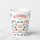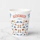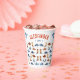 Estas tazas de papel de cumpleaños para niños de temática occidental son perfectas para invitar a niños o chicas a que se den el talón y celebren un divertido cumpleaños al aire libre en la granja. Con un diseño acuático de gorras de vaquero, botas y herraduras en ricos tonos azules y marrones, estas tazas añaden un encanto rústico y juguetón. El fondo blanco y limpio resalta los tonos tierra y las suaves pinceladas, realzando la animada atmósfera occidental. Se puede personalizar el texto en la parte delantera y trasera de las tazas, incluyendo un nombre en un guión rojo moderno y juguetón y una fecha azul simple en tipografía limpia. Las pequeñas hojas de color azul acuático completan el diseño, añadiendo un toque personal para una celebración memorable.