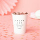 Tazas de papel modernas y minimalistas en blanco y negro para agradecer a los invitados por celebrar conmigo la despedida de soltera.