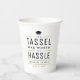 Diseño moderno de tipografía "la tassel valía la pena" en negro y oro, grandes tazas de papel personalizadas para la fiesta de graduación.