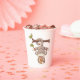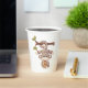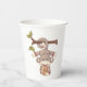 Un mono colgando de su cola sosteniendo una pelota de fútbol. Este diseño parece realmente efectivo en estas tazas de papel