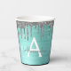 Vasos De Papel Monograma Aqua Blue Silver Purpurina y Esparkle