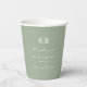 Vasos De Papel Monograma de Boda verde claro de color sólido simp