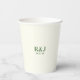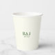 Crea tazas de papel boda con tus monogramas! Verde con una sombra muy clara de amarillo. El encanto es sencillo y moderno. Personalizar el anverso y la espalda con el monograma deseado de la pareja y la fecha del boda. Parte de la colección Romantic Tree Design. Utilice la plantilla para crear sus propias tazas de papel monograma boda.