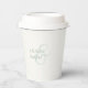 Moda y minimalista. Estas preciosas tazas de papel boda presentan un monograma de pareja con colores verdes sabrosos, sobre un fondo de marfil de moda.