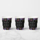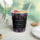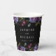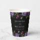 Elegantes tazas de papel boda floral con un borde superior e inferior de flores moradas y burdeos con hojas verdes y bayas oscuras. Personalice las tazas de papel color morado con sus nombres y fecha de boda. Utilice estas tazas de papel floral de moda en la recepción de su boda, fiesta de compromiso, cena de ensayo y ducha de parejas. Las tazas de boda floral de moho fueron diseñadas para coordinar con nuestra colección de bodas florales góticos Moody.