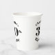 Cumpleaños Número de nombre personalizado de las tazas de papel de fiesta de moda elegante, blanco y negro. Ideal para las celebraciones de cumpleaños, 10, 20, 30, 40, 50, 60, 70, 80, 90, 100 cumpleaños, personalizadas con nombre y número.
