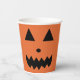 Copa de papel naranja de Halloween con una graciosa cara de calabaza para tu fiesta de Halloween este año.