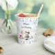 Cute tazas de papel de Little Sailor con un adorable osito de peluche vestido de marinero, gaviota de barco y faro. Fondo del patrón de anclaje de color de agua. Personaliza fácilmente el texto. - Kate Eden Art
