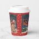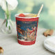 Santa es un poco patriótico que renuncia a su bandera estadounidense mientras monta su trineo en el aire en la víspera de los Navidades y le desea a sus amigos y familia "Una Feliz Navidad" en estas tazas de papel.