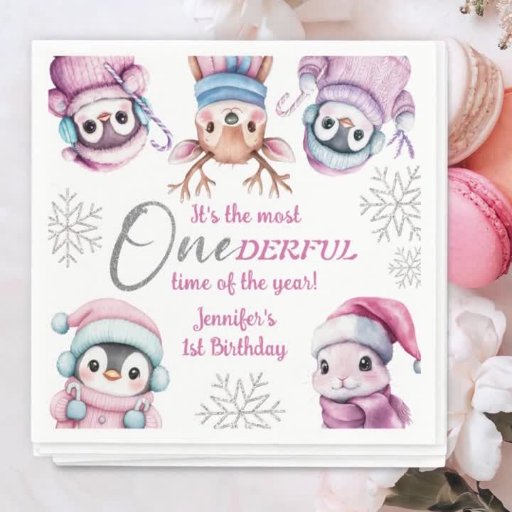 Vasos De Papel Navidades 1er cumpleaños animales de invierno rosa