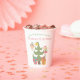 Estas tazas de papel personalizado presentan un bonito tema de invierno pastel. Una imagen de un árbol de Navidad caprichoso es retratada en la parte inferior, con dos pequeñas hadas volando a su alrededor. Un regalo bellamente envuelto es retratado debajo de cada hada. En la parte superior se imprime un evento de Fiesta de artesanías de Navidades de ejemplo, junto con un nombre de familia. Puede personalizar los vasos para incluir su propio nombre o texto personalizado.