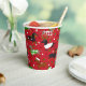 Navidades golosos dachshund perros con abrigos negros, tostados y de manzana vestidos con ropa festiva, sombreros de Santa y suéteres de argyle con un patrón disperso de adornos navideños.