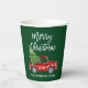Guión de pincel moderno Feliz Navidad Watercolor Vintage Camión Rojo con tazas de papel de árbol de Navidad - Verde forestal