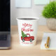 Guión de pincel rojo moderno Feliz Navidad Watercolor Vintage Camión rojo con tazas de papel de árbol de Navidad
