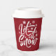Aplaude a tus Navidades con este alegre diseño de taza de papel que presenta la tipografía blanca "Let it Snow", salpicada de copos de nieve sobre una sólida textura de fondo rojo. Busque ID951 para ver otros productos con este diseño.