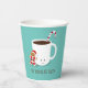 Navidades en tazas de papel para un fiesta de chocolate caliente. Estas tazas cuentan con una jarra sonriente de cacao caliente con un bastón de caramelo y un feliz hombre de pan de jengibre Santa sobre un fondo verde azulado. Todas las palabras se pueden personalizar. Navidades de Santa Gingerbread Fiesta de chocolate caliente Cuadros de papel Dulce Comida Arte | ©Melissa Patton - Artista/Ilustrador