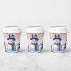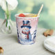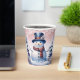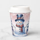 Disfrute de sus bebidas favoritas de vacaciones con un conjunto festivo de copas de papel de Navidades de invierno rosados. El diseño de la copa de papel incluye un lindo muñeco de nieve con un bonito sombrero superior y una bufanda parados en una escena del bosque invernal con caída de nieve. También hay artículos de regalo y de vacaciones disponibles con este diseño.