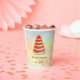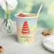 Estos Navidades en julio de Cups de papel están decorados con un acuarela de color rojo y un árbol de Navidad sobre un fondo colorido. Porque creamos nuestra obra de arte no encontrarás esta imagen exacta de otros diseñadores. Acuarela original © Michele Davies.