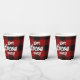 Copas de papel de vacaciones de invierno con el patrón rojo y negro de relleno de búfalo y el logotipo opcional y la cita "Get Cocoa Cozy", estupendo para un fiesta de Navidades de trabajo, o patrocinado por un fiesta de cacao caliente o chocolate caliente, y estupendo para el almacenamiento en una casa de alquiler o refugio de esquí para los huéspedes. El color de fondo y el texto se pueden personalizar para que coincidan con cualquier tema de color.
