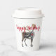 El alce acuarela con lazo festivo y el holly sobre su hilo y personalizable rojo "Felices Fiestas" texto. Perfecto para fiestas grandes y pequeñas