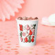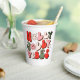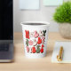 Navidades retro Holly Jolly Vibes Trendy Holidays Coffee Paper Cups presenta el texto "Holly Jolly Vibes" en un guión retro en rojo, verde y rosa acentuado con estrellas y caras adorables y felices. Diseñado por ©Evco Holidays www.zazzle.com/store/evcoholidays