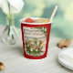 Un fiesta de Navidades con temas musicales no está completo sin tazas de papel a juego. El diseño presenta un cuerno francés decorado para las vacaciones con vegetación, bayas rojas y flores, frente a un rollo de partitura de chapa vintage. El fondo rojo falso metálico añade un toque festivo adicional.
