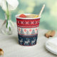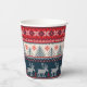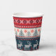 Cute Navidades taza de papel con un patrón de tejido con temática navideña, una silueta de ciervo y guión