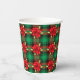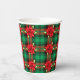Añada un toque de Navidad a su comida o fiesta de vacaciones con este vaso de papel con fondo de manta con poinsettias sobre él en los colores tradicionales de los Navidades.