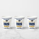 Customize your own navy blue and gold high school Class of 2026 graduate paper cups for a high school or college graduation party. Cool varsity letters for the year on great custom decor for seniors.