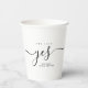 Mejora tu ducha nupcial o fiesta de compromiso con estas tazas minimalistas de papel blanco y negro de moda. Con la elegante frase "She Said Yes" en un guión moderno, estas tazas aportan un toque sofisticado a cualquier celebración. Su diseño depurado y sobrio es perfecto para las parejas que aprecian una decoración atemporal que se complementa sin esfuerzo con cualquier tema. Ideal para servir bebidas en duchas de novias, duchas de boda o fiestas de compromiso, estas tazas son prácticas y elegantes. Añade un toque personalizado para que tu día especial sea aún más memorable.