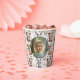 Neutral woodland animals birthday paper cups featuring a soft forest animal pattern with a personalized photo design. Cute bear, deer, fox, and bunny illustrations create a calm, natural look perfect for kids’ birthday celebrations.