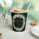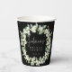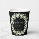 Elegantes tazas personalizadas de papel negro para duchas nupciales. Diseño de doble cara, con nevadas pintadas a mano y eucalipto dispuestos en una hermosa corona botánica. Todo el texto es totalmente editable, por lo que puede cambiar o eliminar fácilmente el mensaje en uno o ambos lados y alterar el estilo/color/tamaño del tipo de letra. Elementos de coordinación disponibles.