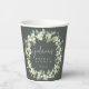 Elegantes tazas de papel personalizadas de color gris oscuro para duchas nupciales. Diseño de doble cara, con nevadas pintadas a mano y eucalipto dispuestos en una hermosa corona botánica. Todo el texto es totalmente editable, por lo que puede cambiar o eliminar fácilmente el mensaje en uno o ambos lados y alterar el estilo/color/tamaño del tipo de letra. Elementos de coordinación disponibles.