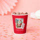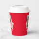 Aquí hay una mirada vintage de las tazas de papel de Santa Claus. Con un fondo rojo, que se puede personalizar, este diseño tiene un sello oficial del Polo Norte que dice "No abras hasta la víspera de los Navidades". El texto de la parte inferior también se puede personalizar.