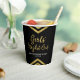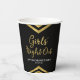 Estas tazas de papel modernas presentan un diseño elegante de chevron geométrico y las palabras "Noche de chicas" en lámina de oro falsa sobre un fondo negro; perfecto para una despedida de soltera.