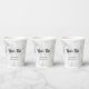 Un nombre de negocio profesional y un vaso de papel de texto con un fondo de mármol blanco. Perfecto para su negocio, oficina, evento corporativo, negocios de hospitalidad, etc.