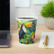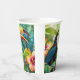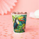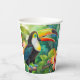 Imagen de un ave tropical toscana rodeada de hojas verdes y flores de hibisco, generada con la ayuda de AI. Puede personalizar fácilmente este vaso de papel con su propio nombre o texto.