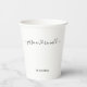 Nombres minimalistas personalizados y tazas de papel de fecha boda. Elegante diseño hecho de nombres recién casados impresos en escritura cursiva y unido con un corazón en el medio y una fecha impresa básica hacia el fondo del vaso. Mostrar elegancia y estilo con la elección de este sencillo diseño hecho para celebrar a la nueva pareja y su amor.