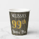 Este lujoso y adornado diseño de taza de papel de cumpleaños incluye un nombre de personalizable y el mensaje "Novena fiesta de cumpleaños". El gran número "99th" tiene un patrón de color inspirado en el oro de imitación/imitación, y las palabras "Birthday Party" están en un elegante texto estilo guión. El fondo presenta una decoración de imitación/imitación de madera. Elegantes y opulentas tazas de papel como esta podrían ser útiles para tener en una celebración/fiesta de cumpleaños que se lleva a cabo en celebración del cumpleaños 99 de alguien. [~Z0000568]