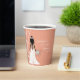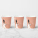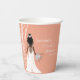 ¡Celebra con estilo con estas elegantes tazas de papel para despedida de soltera boho! Con una elegante cortina de perlas y una impresionante novia boho con un delicado vestido de novia de encaje, este diseño está bellamente adornado con un exuberante ramo de rosas, hierba de pampas, eucalipto y ranunculus.