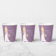 Esta taza de papel con tema boho presenta una elegante cortina de perlas y una impresionante novia boho con cabello rubio en un delicado vestido de novia de encaje. Adornada con